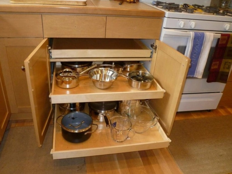Những chiếc nồi sẽ được tổng hợp lại và lưu trữ vào một không gian riêng để bạn dễ dàng tìm thấy và sử dụng. Những chiếc khay nếu có lỗ thoáng khí thì sẽ càng tốt hơn.