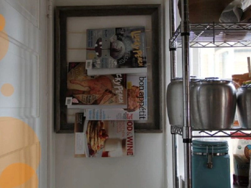 Bạn đừng vứt những cuốn tạp chí bừa phứa lên mặt bàn, điều đó sẽ khiến nhà bếp của bạn trông luộm thuộm. Bạn nên tạo những giá treo nhỏ để gác những cuốn tạp chí gọn gàng lên thế này, chắc chắn nhà bếp của bạn sẽ trông gọn gàng hơn.