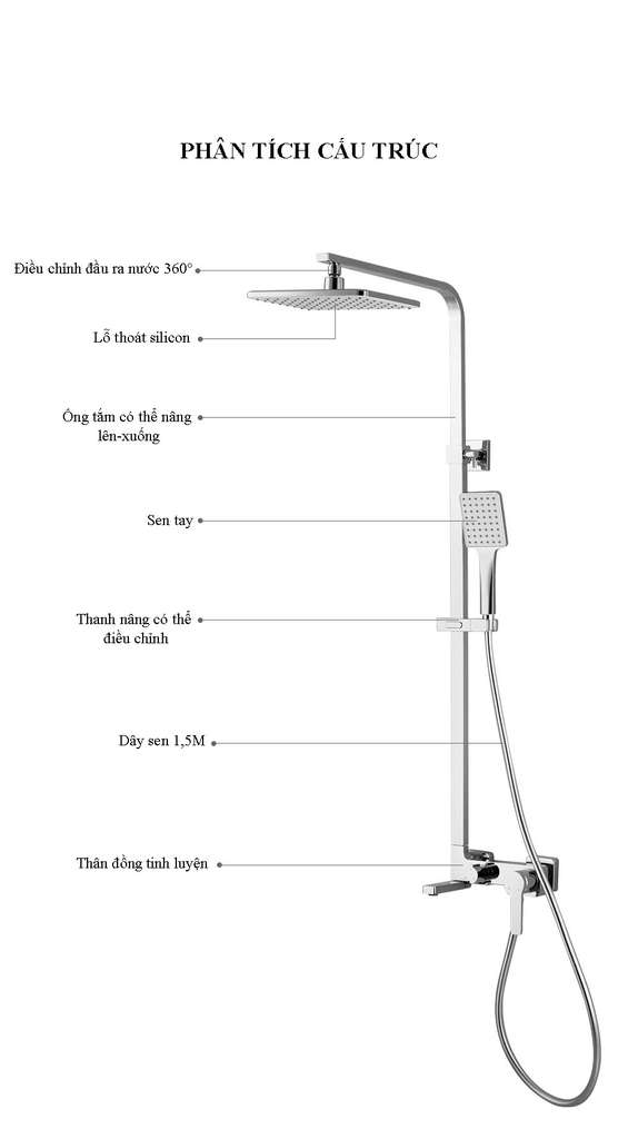 | 3. Ống tắm nâng hạ linh hoạt | Dễ điều chỉnh chiều cao theo nhu cầu người dùng. |
