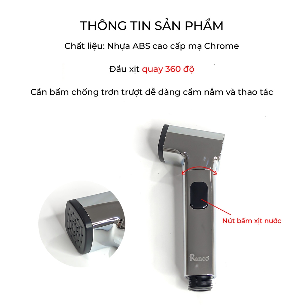 Đầu xịt nhựa ABS cao cấp mạ Chrome, chống rỉ nước, chống ăn mòn, đầu xoay 360°, kiểu dáng hiện đại