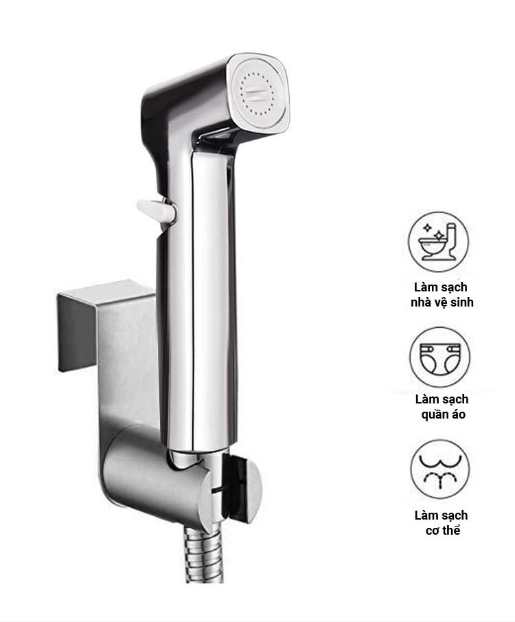 - Vòi xịt giúp làm sạch vùng kín của người dùng sau khi sử dụng toilet một cách hiệu quả, đảm bảo vệ sinh cá nhân.