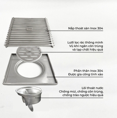 - Công dụng chính: Thoát nước nhanh, ngăn mùi, ngăn côn trùng, chống trào ngược.