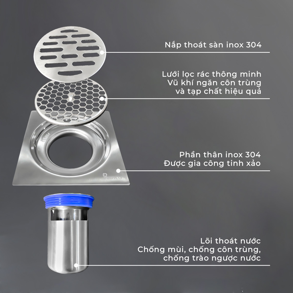 - Công dụng chính: Thoát nước nhanh, ngăn mùi, ngăn côn trùng