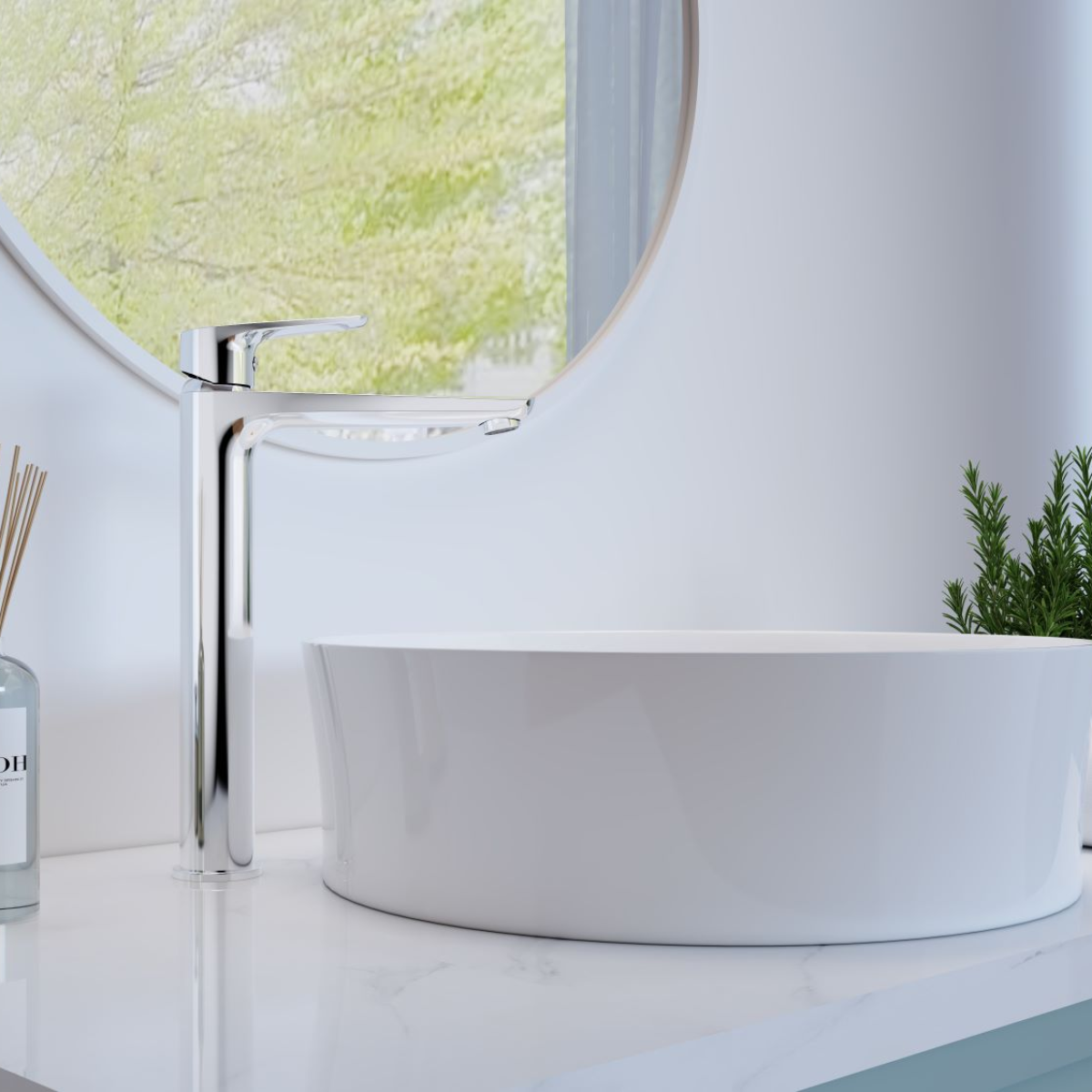 Vòi chậu RANCO RC-Y20 định nghĩa lại sự sang trọng qua ngôn ngữ thiết kế tối giản với thân trụ vững chãi, vươn cao kiêu hãnh dành riêng cho các dòng chậu đặt nổi. Sự kết hợp giữa vòi xả vươn dài và tay gạt phẳng tinh tế, cùng các đường nét bo tròn mềm mại, tạo nên vẻ đẹp thanh thoát cho không gian phòng tắm thượng lưu. Bề mặt mạ Chrome sáng bóng không chỉ lôi cuốn mà còn khẳng định sự tỉ mỉ trong chế tác đa tầng bền bỉ. Điểm nhấn nằm ở tay gạt siêu mỏng tích hợp ký hiệu nóng lạnh trực quan, giúp vận hành nhẹ nhàng và chuẩn xác. Đây chính là bản giao hưởng hoàn hảo giữa thẩm mỹ đương đại và công năng vượt trội.