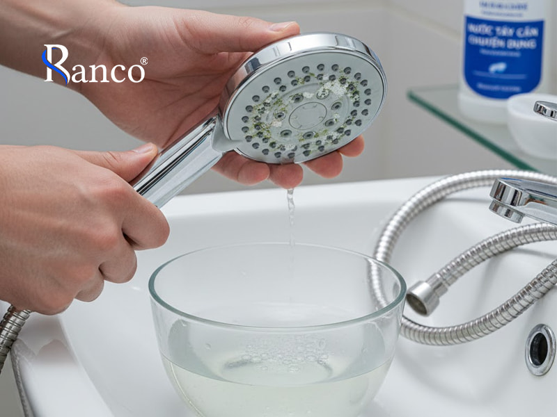 Tháo đầu sen và ngâm trong dung dịch giấm hoặc nước tẩy cặn chuyên dụng để loại bỏ cặn canxi, cát bẩn. Việc vệ sinh định kỳ giúp khôi phục lưu lượng nước và tia phun mạnh hơn.
