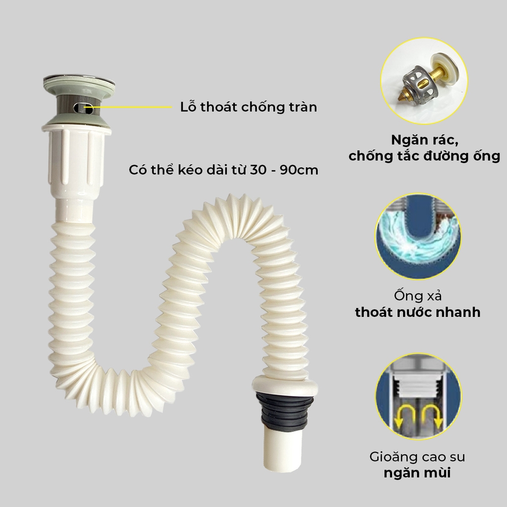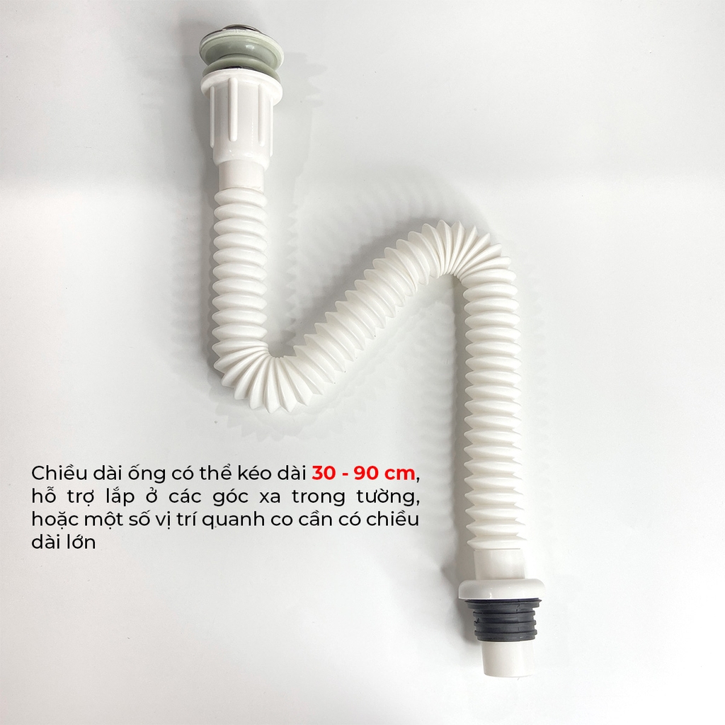 - Ống thoát sun nhựa cao cấp chịu nhiệt, có thể kéo dài, dễ dàng lắp đặt 1' trong các loại xi phông thoát nước