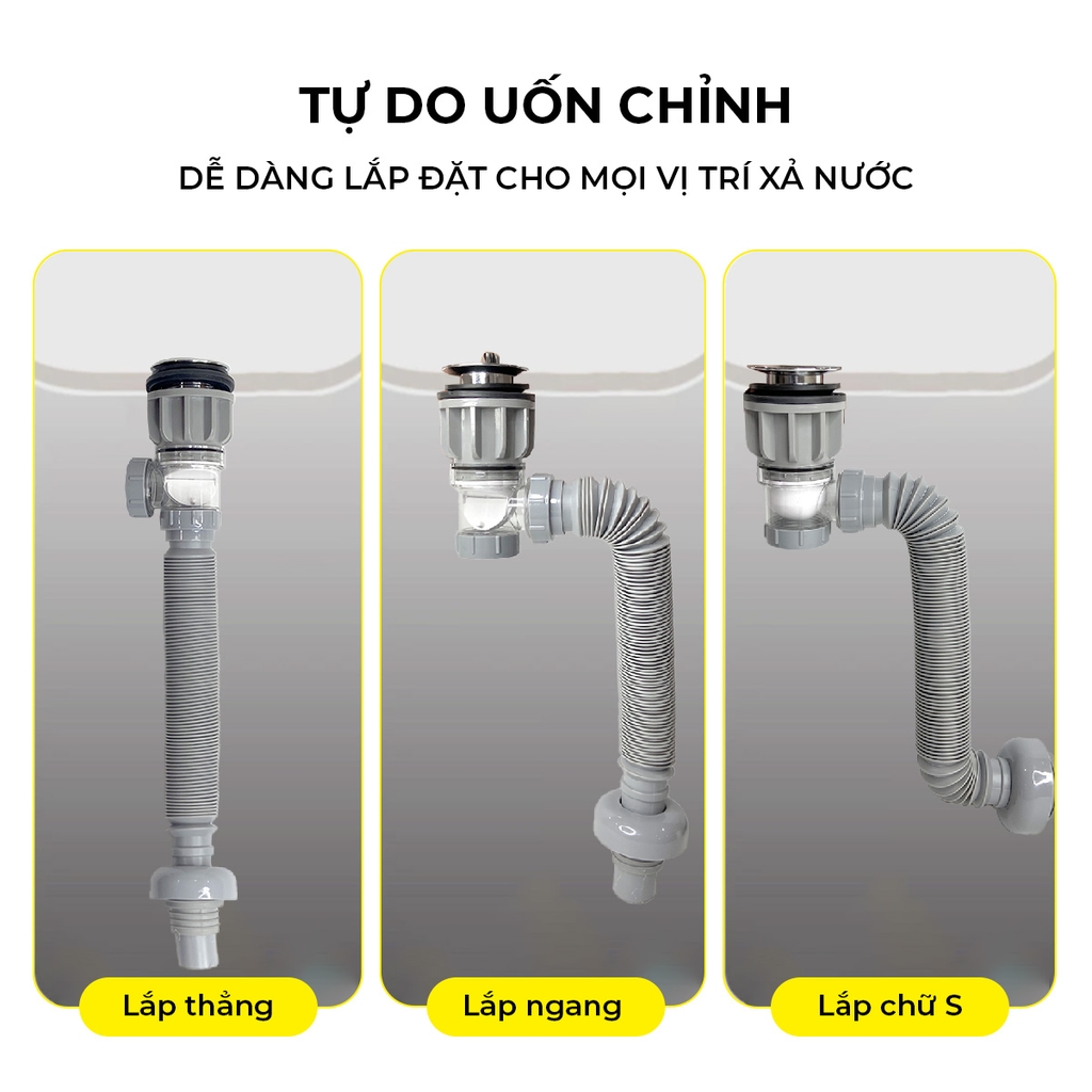- Ống thoát sun nhựa cao cấp chịu nhiệt, có thể kéo dài, dễ dàng lắp đặt 1' trong các loại xi phông thoát nước