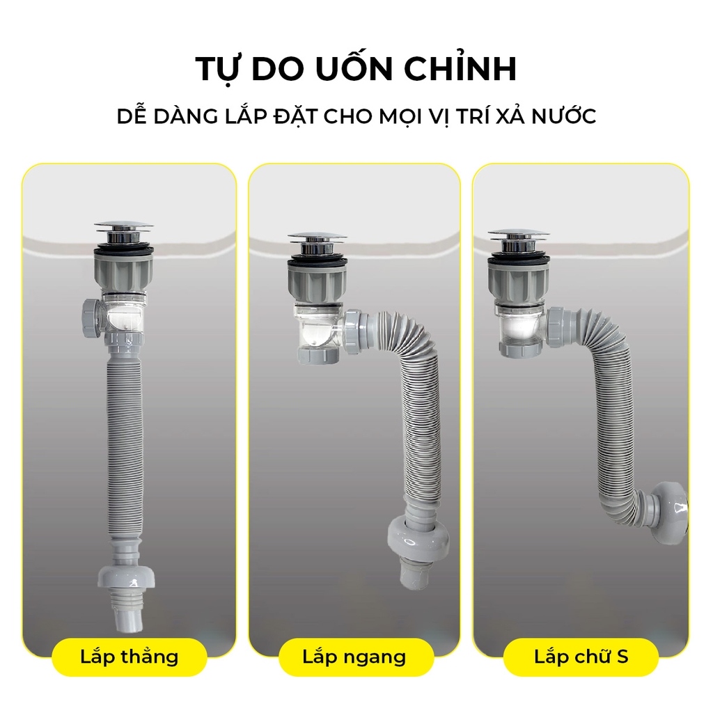 - Ống thoát sun nhựa cao cấp chịu nhiệt, có thể kéo dài, dễ dàng lắp đặt 1' trong các loại xi phông thoát nước