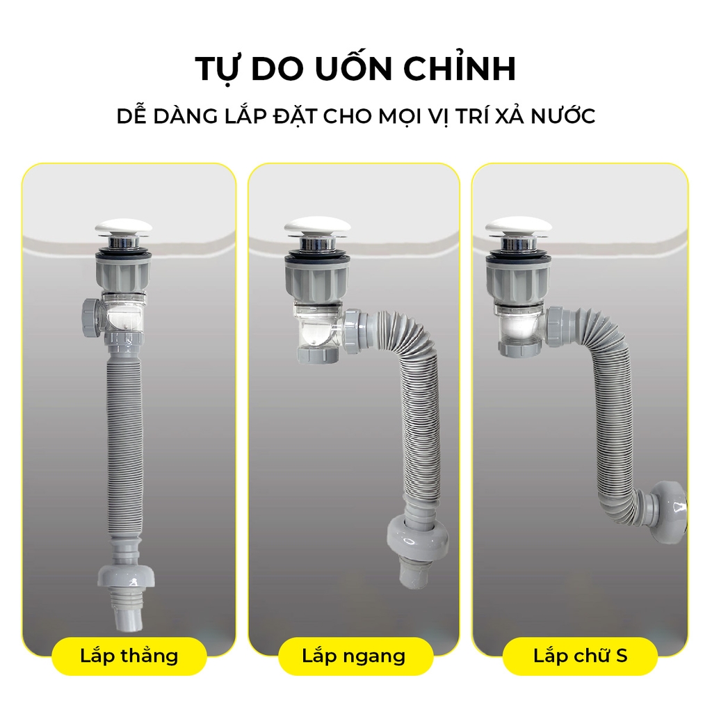 - Ống thoát sun nhựa cao cấp chịu nhiệt, có thể kéo dài, dễ dàng lắp đặt 1' trong các loại xi phông thoát nước